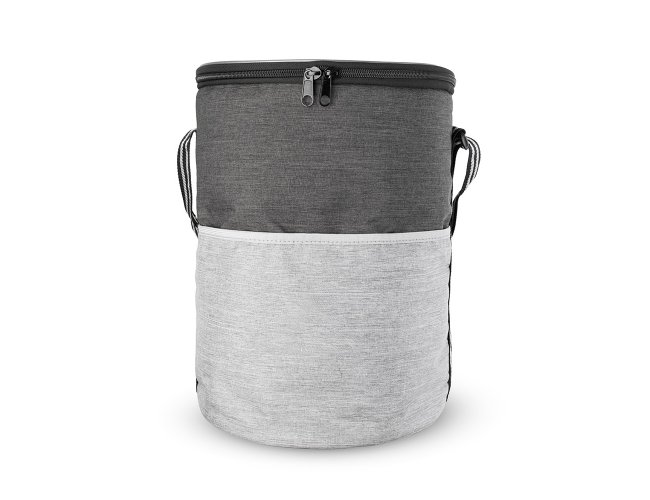 Bolsa térmica 25 litros preta com detalhes em cinza. Modelo poliéster, possui dois zíperes com abertura em ?U?, alça de ombro ajustável em nylon e bolso cinza frontal. Parte interna com costura soldada (Não vaza).