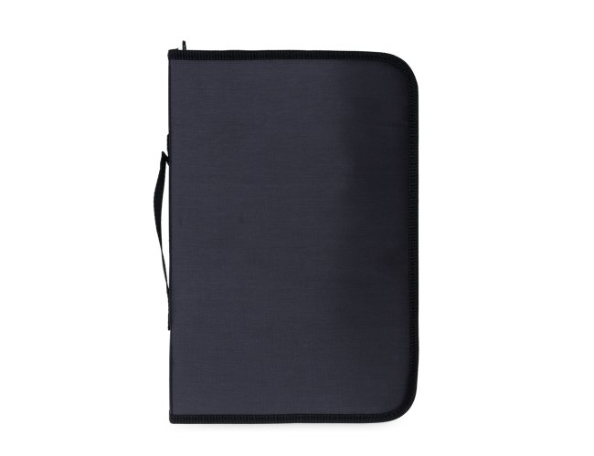 Kit churrasco 3 peças em estojo de nylon com alça. Possui tábua de madeira com canaleta, garfo e faca. Acompanha proteções plásticas e parte interna com elástico para fixar as peças.